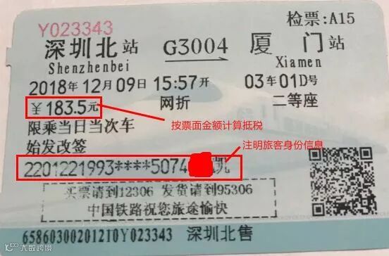 二、取得注明旅客身份信息的机票、火车票、公路与水路等其他客票,按票面金额计算抵扣。