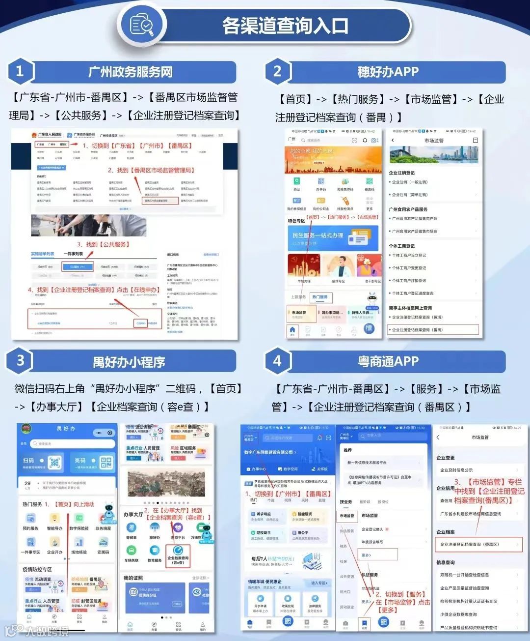 番禺区市场监管局定于2022年11月15日起将查询企业注册登记档案服务方式调整为网上查询,关闭位于番禺区大龙街亚运大道550号番禺区政务服务中心三楼19号和20号线下查询窗口,现将有关网上查询操作方式告知如下:
