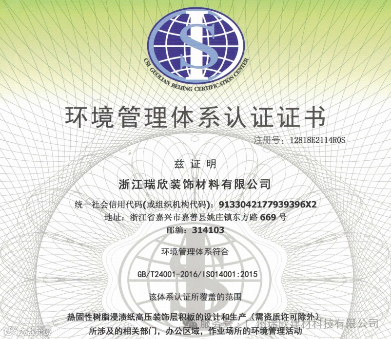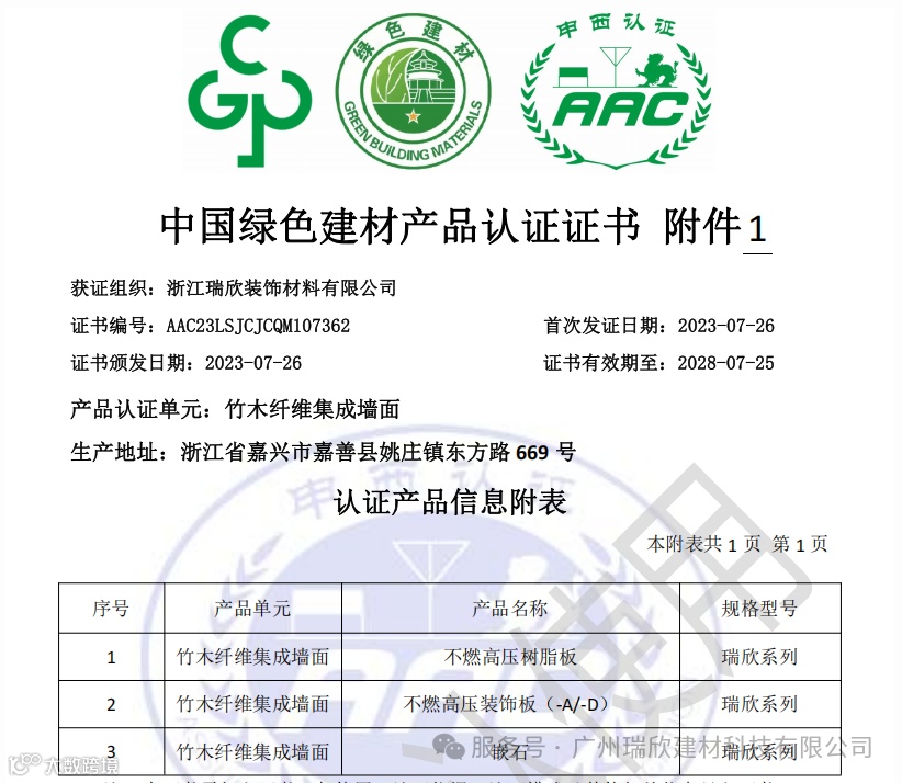 瑞欣不燃高压板赋能项目申报鲁班奖,瑞欣拥有中国绿色建材星级认证(目前国内瑞欣有此认证)、环境体系认证、质量管理认证、等多项专业认证证书。瑞欣不燃高压树脂板不仅达到国标要求沸水水煮2小时不分层、75°烘干48小时不开裂,符合国家标准(GB7911-2024/GB17657-2022),更拥有A级不燃、清除TVOC、抗菌抗病毒、E0甲醛、环保易清洁等等各项出色的性能,其完全符合鲁班奖申报的各项要求。
