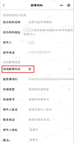 ②邮寄办理:邮寄申报时上传的相应纸质材料到本人参保地所属的医保经办机构窗口,现场邮寄标志选择“否”,相关邮寄信息需在经办机构完成审核后的3个工作日内录入提交。