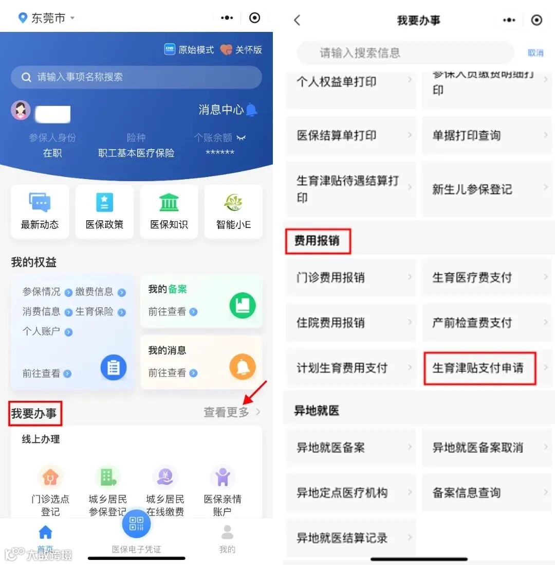 ③通过“i莞家”-预约办事-选择市内任意政务服务中心-预约医保业务-凭身份证办理生育津贴待遇结算打印。