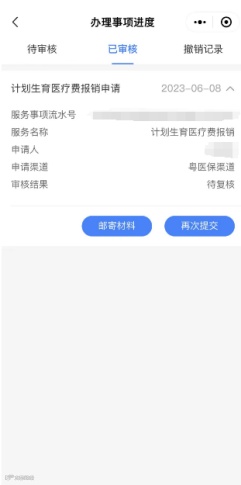 1.“粤医保”微信小程序或广东政务服务网申请的事项,在“粤医保”小程序-我的-办理事项进度-【已审核】界面。广东医保服务平台申请的事项,在广东医保服务平台个人网厅-我要查-查询办事进度-【已审核】界面查询审核情况。