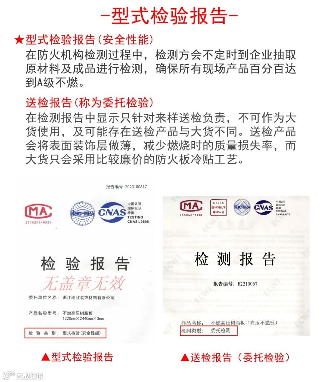 • 瑞欣不燃高压树脂板可提供100%通过现场任意抽检的A级不燃型式检验报告。