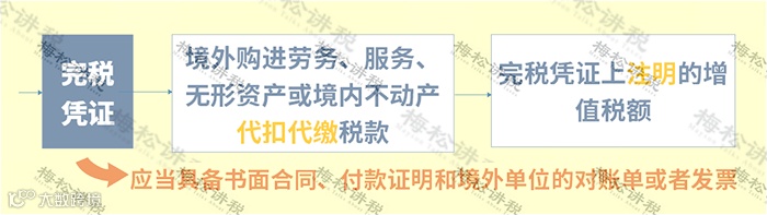 从境外单位或者个人购进服务、无形资产或者不动产,自税务机关或者扣缴义务人取得的解缴税款的完税凭证上注明的增值税额。