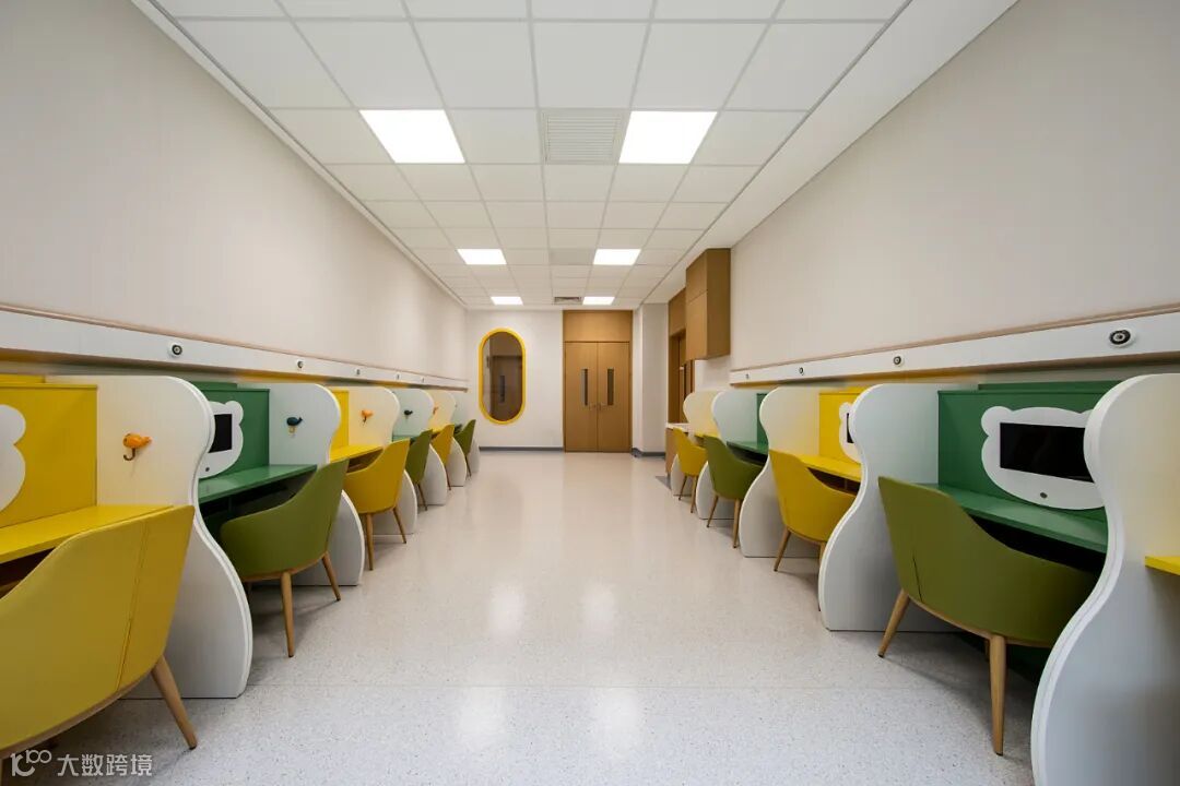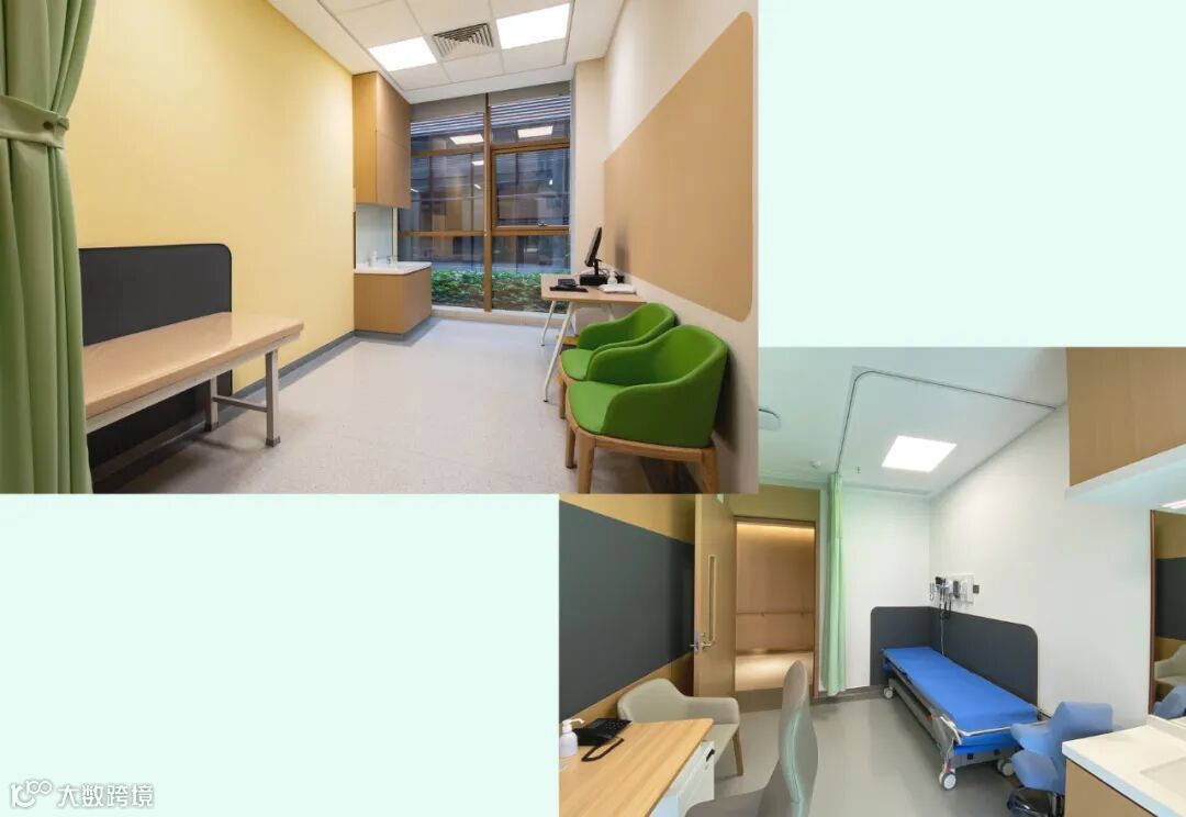 墙面低饱和的天兰色,在保留医疗空间必需的 “冷静专业感”基础上,更缓解了患者对医院的本能抵触,