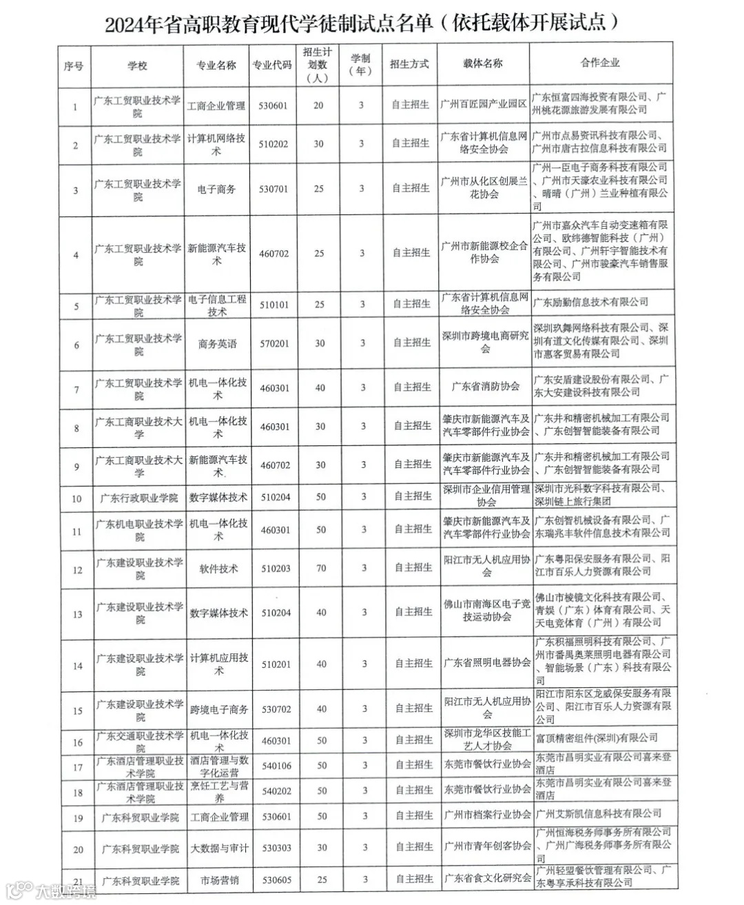 附件2.2024年省高职教育现代学徒制试点名单(依托载体开展试点)