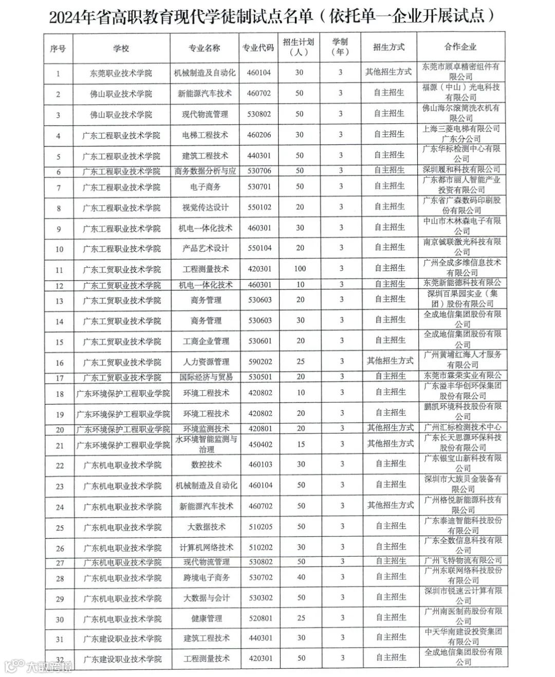 根据《广东省教育厅关于开展2024年省高职院校现代学徒制试点申报工作的通知》等文件要求,经学校申报、专家审核等程序,经研究,同意东莞职业技术学院等54所高职院校在310个专业点开展2024年现代学徒制试点(具体名单见附件)。现就有关事宜通知如下: