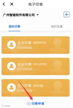 (2)点击“电子印章”图标进入电子印章应用,如下图: