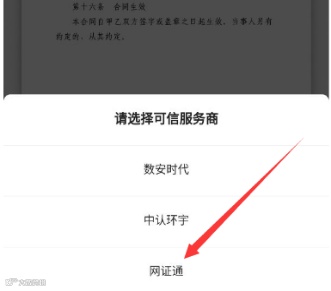 (2)点击“待签署”文件,打开 PDF 文件,阅读完成后,点击“签署”选择服务商后,进行签署操作