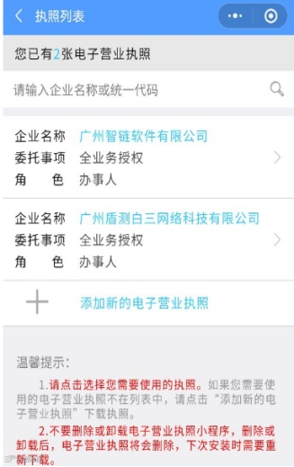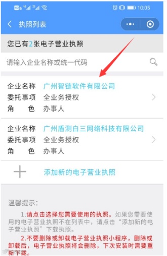 (4)进入电子营业执照认证流程,选择对应的法人企业。如下图: