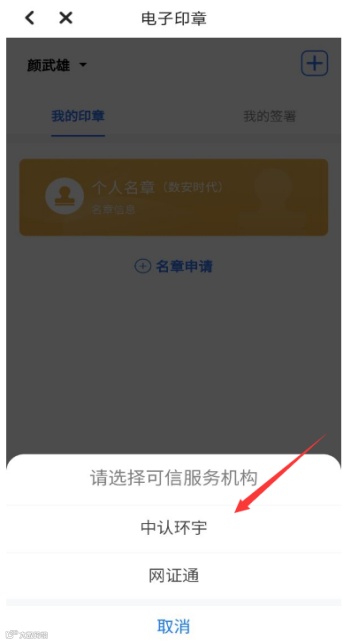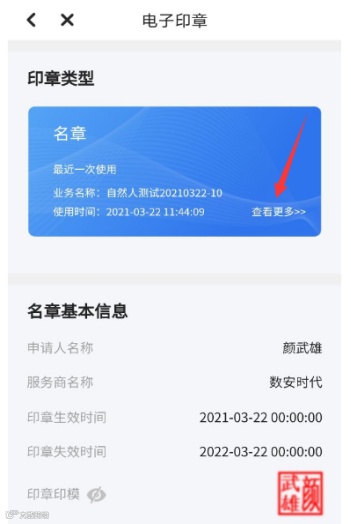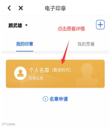 (1)在“我的印章”点击“个人名章(数字时代)”进入查看印章详情