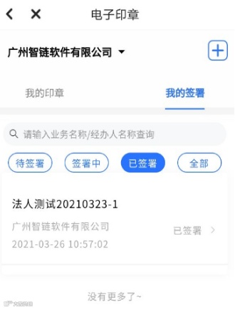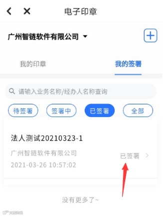 (7)签署状态变更,查看列表数据,状态已变更为“已签