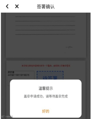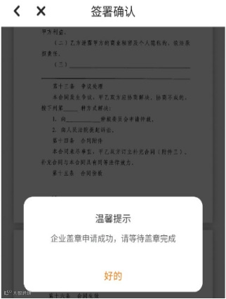 (2)签署完成后,弹出确定成功提示信息,如下图: