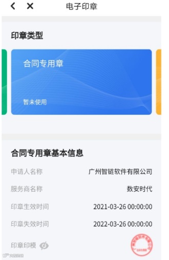 (1)点击已领取的印章,进入可查看详情,如下图: