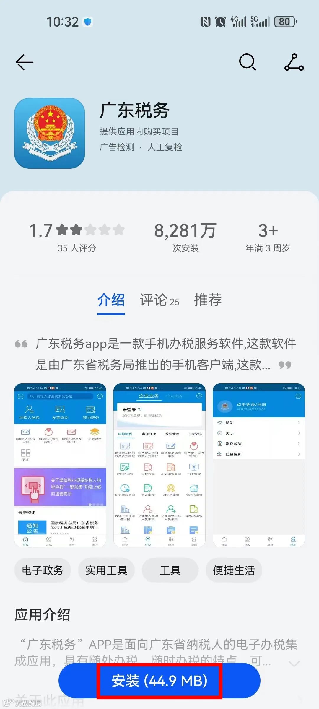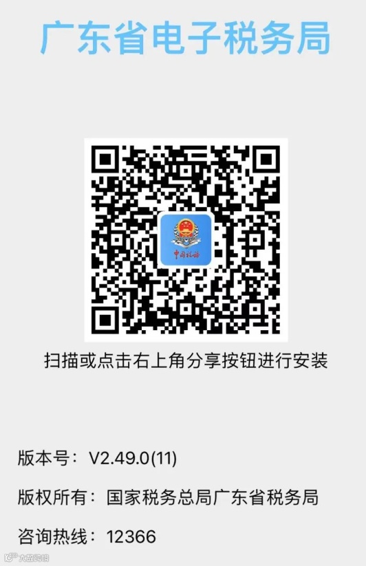 点击下载安装;或扫描下方二维码,直接下载安装广东税务APP。