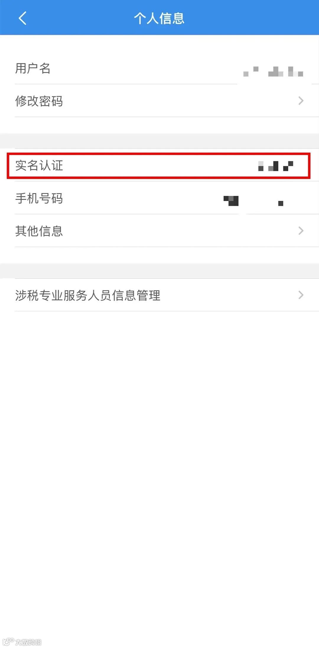 点击红色框中的实名认证,再点击实名信息更新,跳转到实名认证信息录入界面。