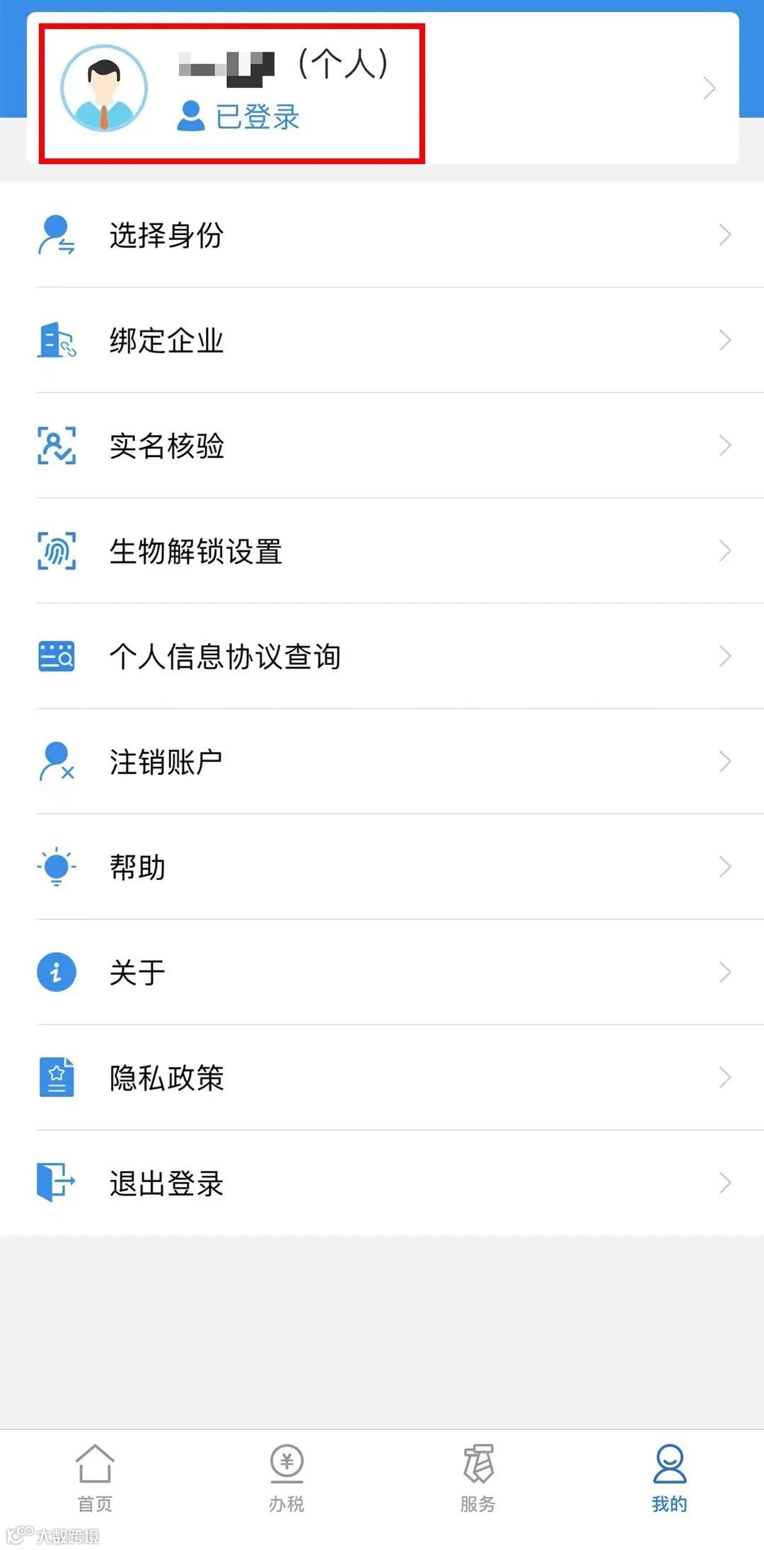 登录完成后,点击名字的位置,进入个人信息菜单。