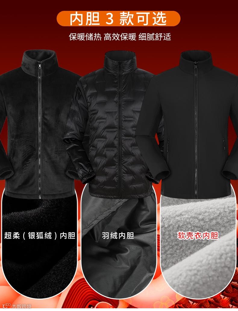 个性化设计:冲锋衣三合一可以根据个人喜好和需求进行定制,包括颜色、图案、尺码、款式等方面的个性化选择,满足消费者的独特审美和穿着需求。