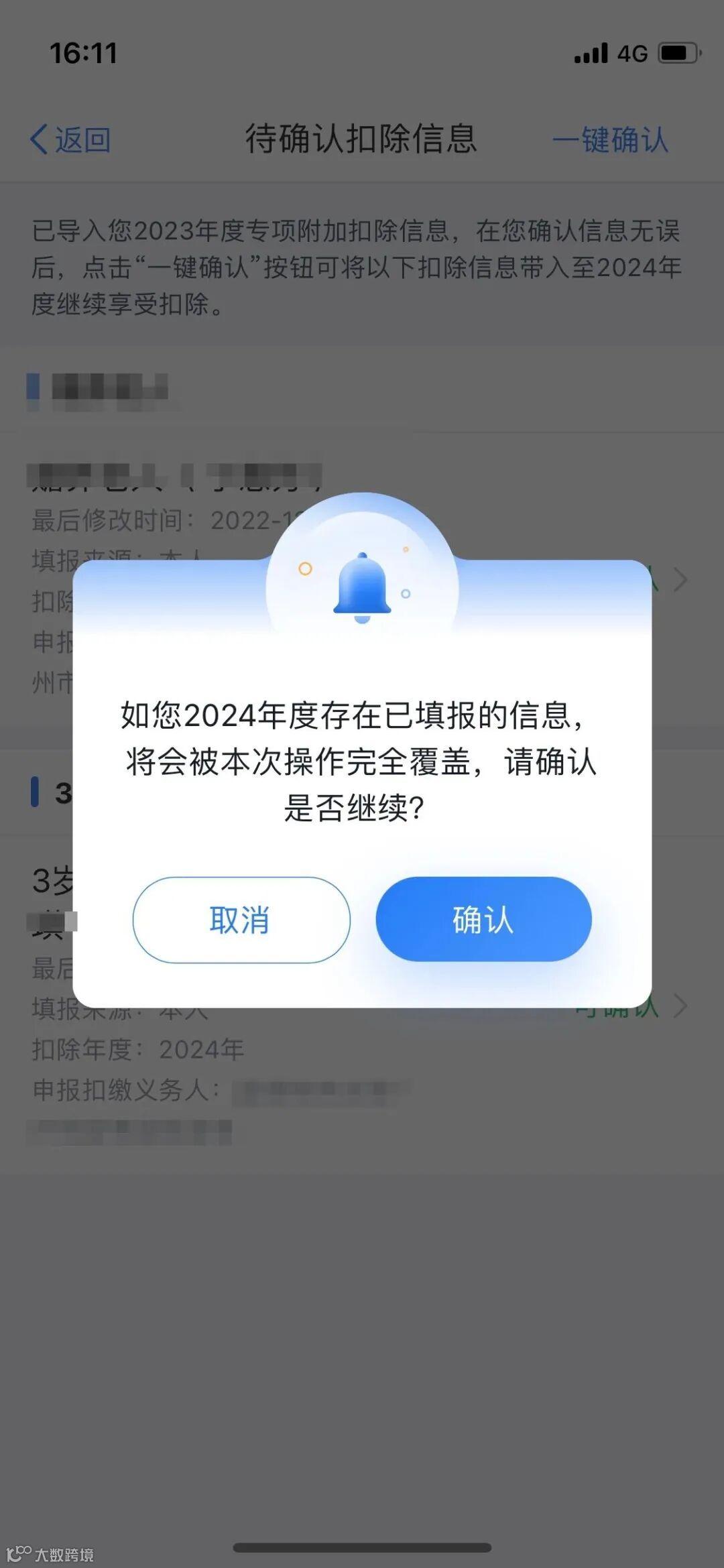 进入待确认扣除信息页面,请逐项点击【可确认】,核对信息是否准确,确认无误后点击【返回】,在页面右上角点击【一键确认】。