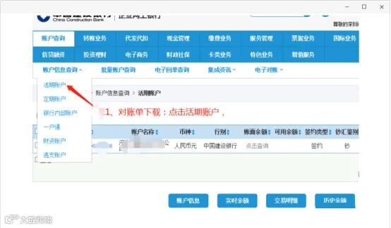 1.登入建设银行网上银行首页,点击【账户信息查询】;