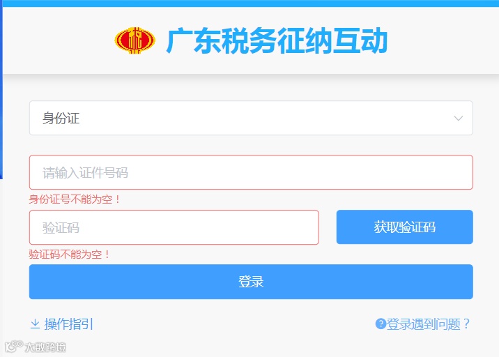 1.浏览器直接登录广东税务征纳互动平台或登录国家税务总局广东省税务局官方网站-纳税服务-征纳互动中进入,输入身份证号码,验证码登录。