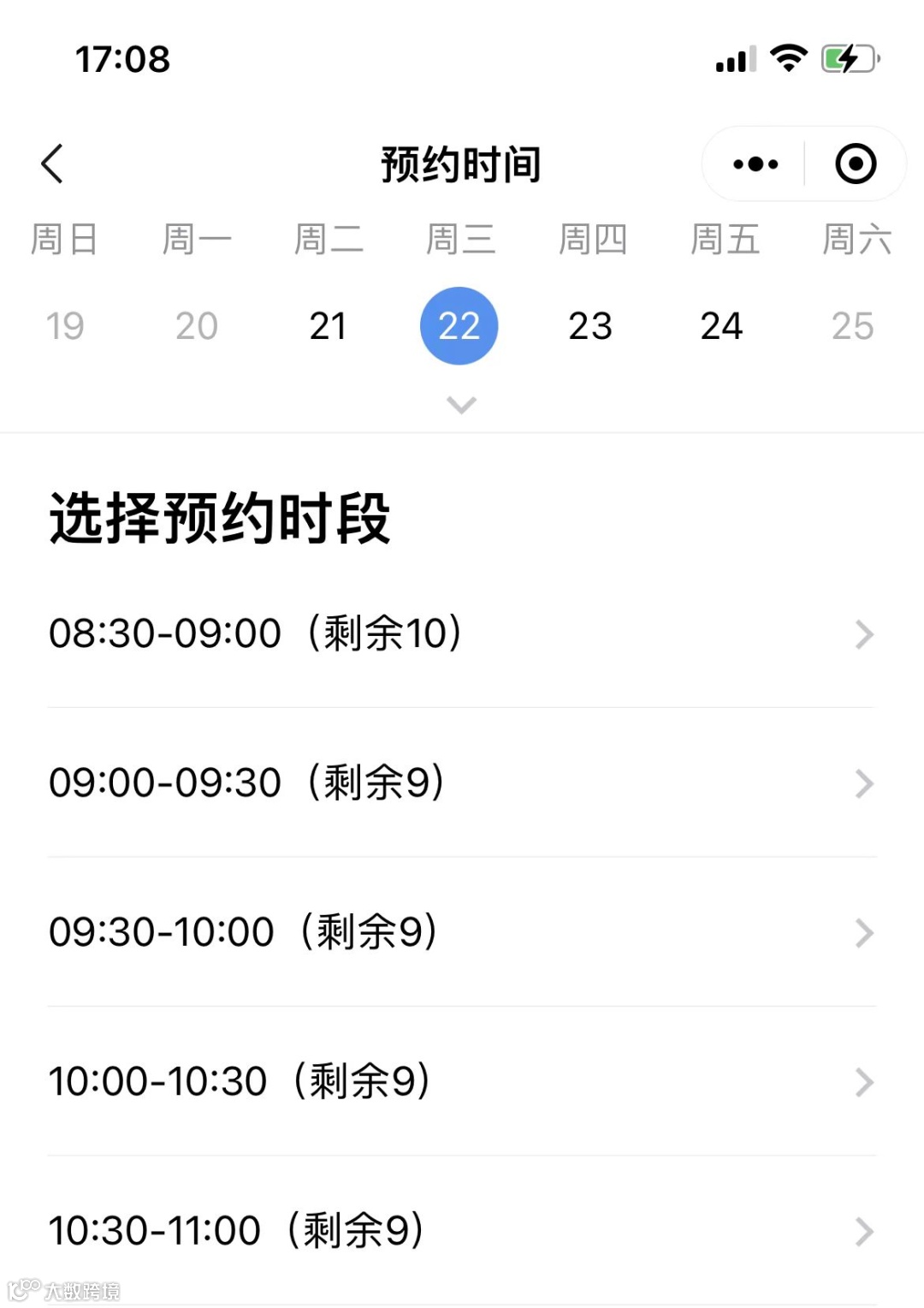 5.选择预约时间(选择日期和办理的时间段)并点击“提交预约”即可完成预约。