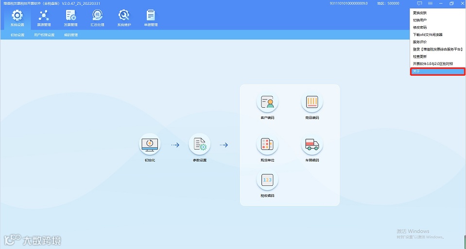 升级之后,开票软件登录界面和关于界面显示版本号V1.0.31_ZS_20231031。