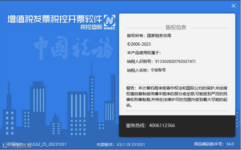 3.增值税发票税控开票软件(金税盘版)版本号:V2.0.62_ZS_20231031。