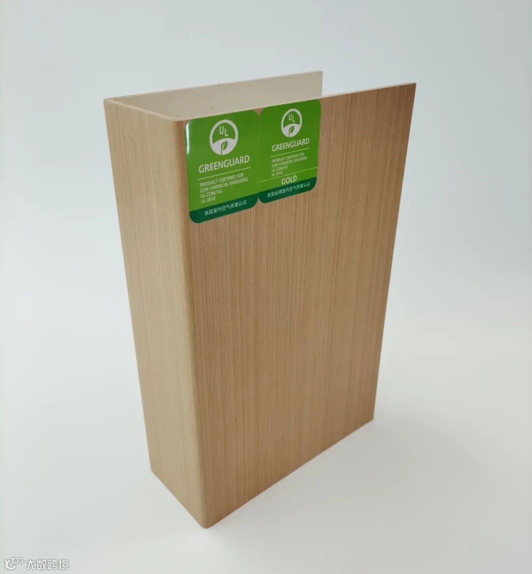 将0.25mm超柔防火板、0.2mm包覆防火板与多种基材双面复合成型,在折弯处刨槽至0.3mm之后填充树脂模具定位成型。