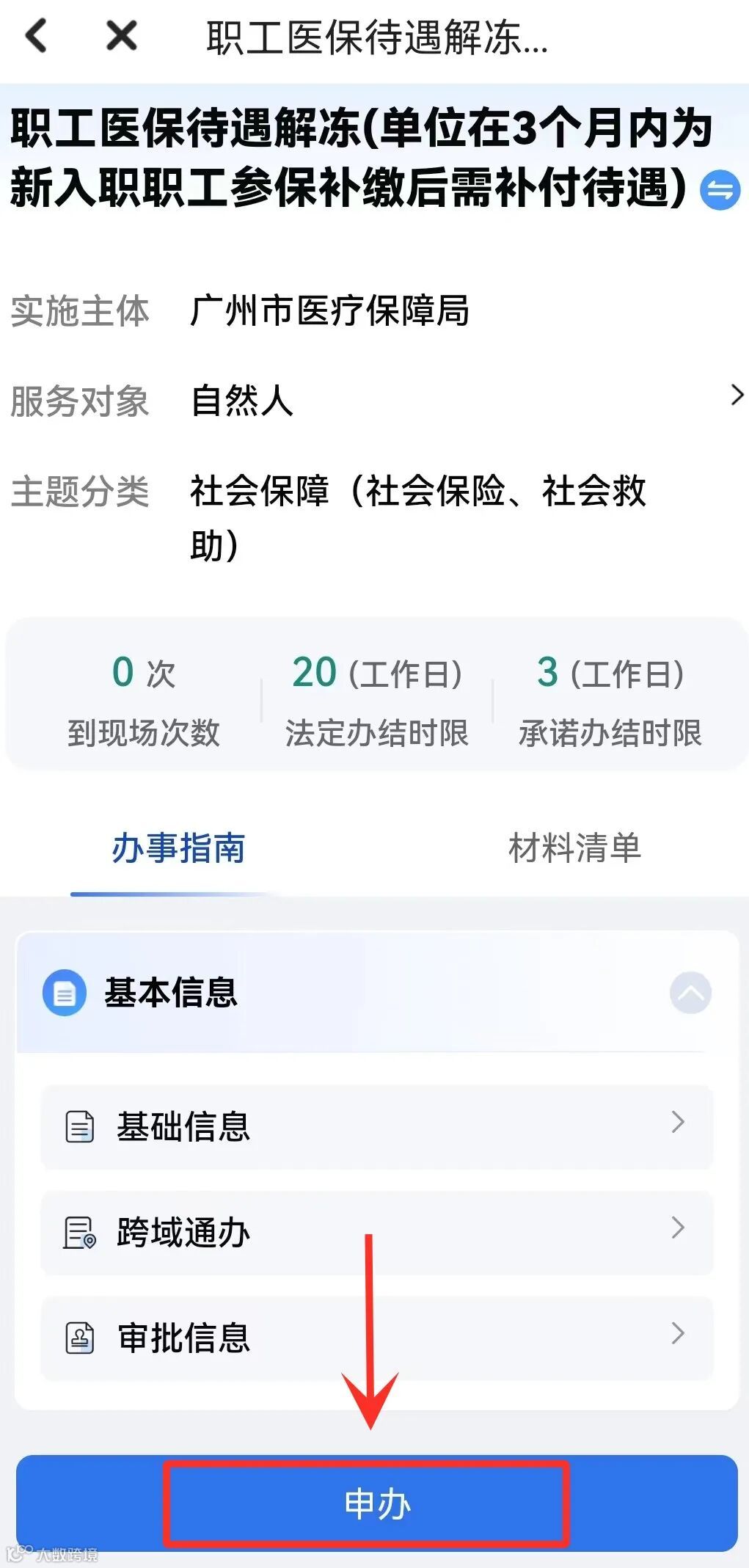 登录“穗好办”APP,在搜索栏搜索“职工医保待遇解冻”。