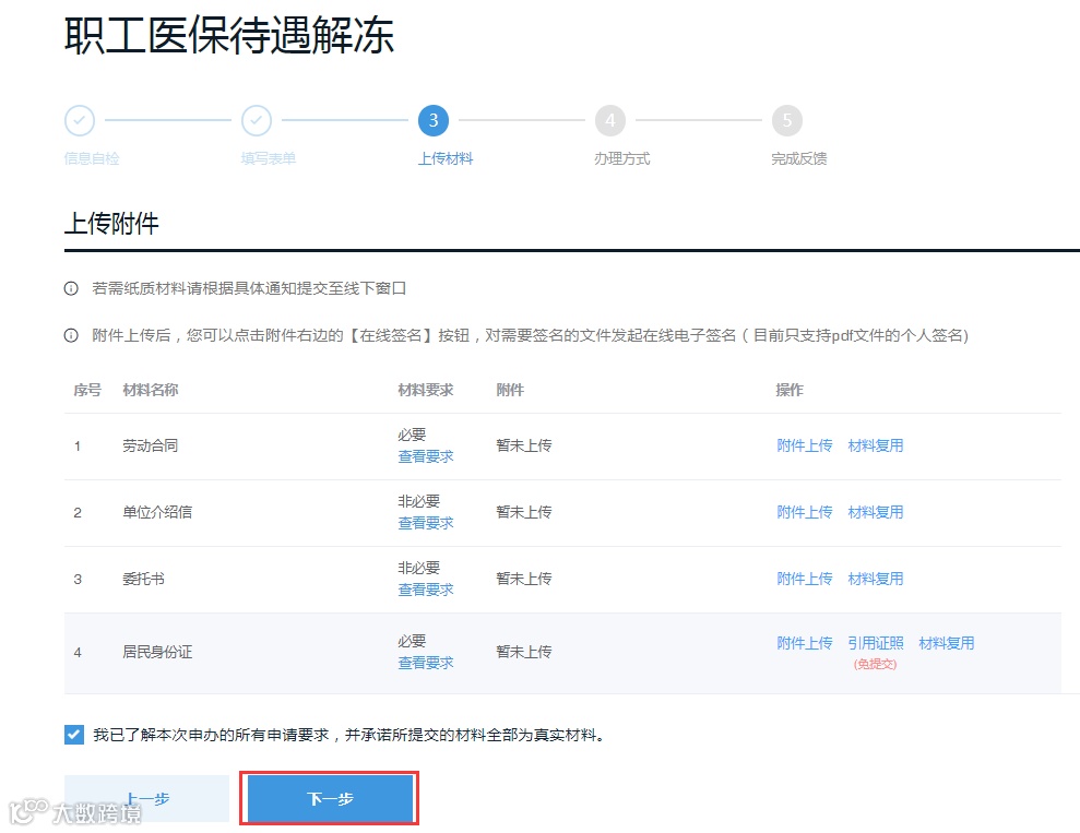 备注:领取失业金的人员申请待遇开通可选“因经办部门原因导致未能成功缴费但已补缴医保费”情形,上传材料时可用“失业保险待遇支付表”或“社保部门出具的协办函”代替“税务出具或责任部门认定的协办函”。
