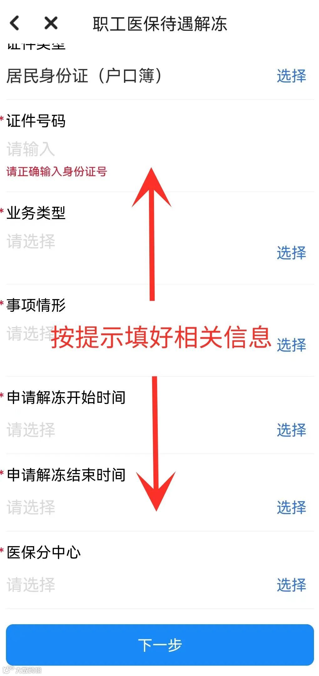 备注:申请人如需解冻某个月整月待遇的,职工医保待遇解冻申请表中的“开始年月”填写为当月第一天,“结束年月”填写为当月最后一日。