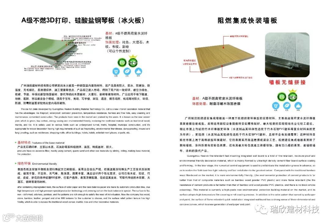 广州瑞欣硅酸盐装饰板配选样册免费派送