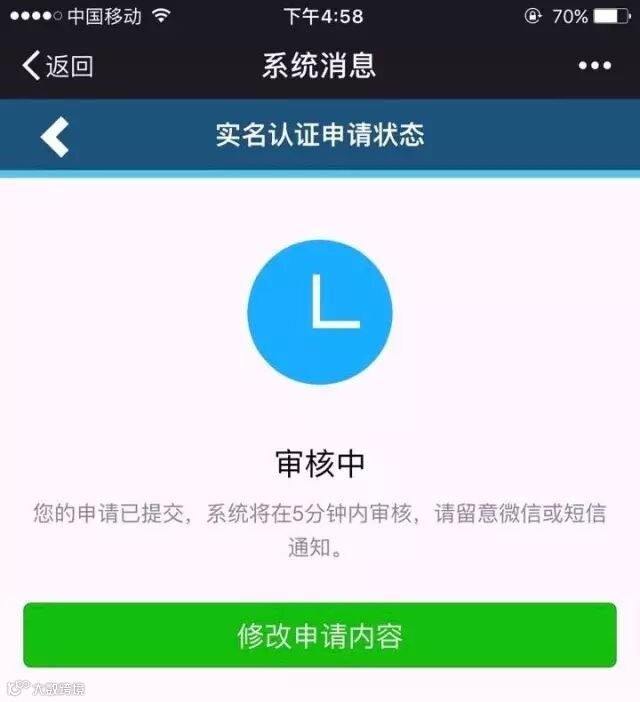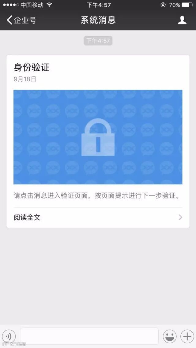 3、点击这条消息,进入身份验证