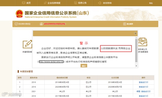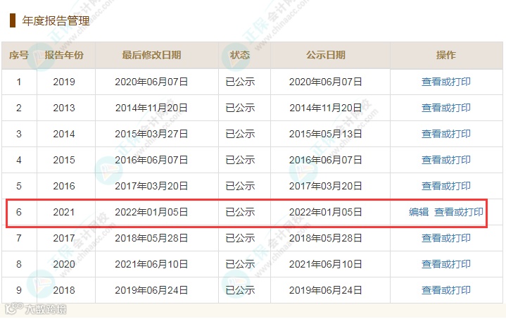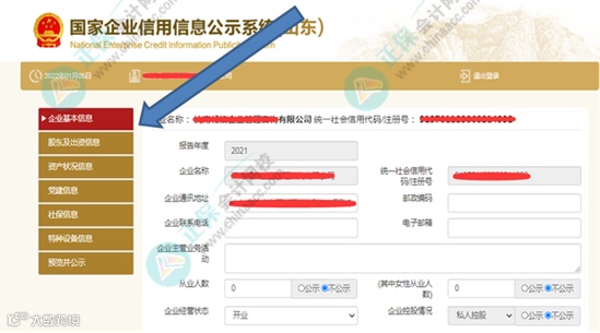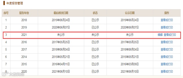 以2021年为例,显示出来如下图所示。如果是2023年登录公示系统,则这里会显示报告年份2022年未公示。