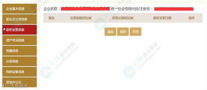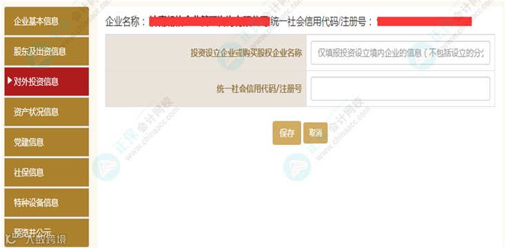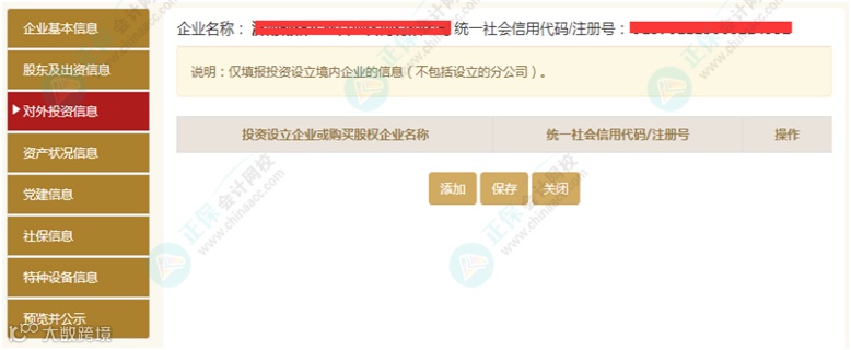 再例如:“是否有投资信息或购买其他公司股权” 选“是” ,则出现如下界面。