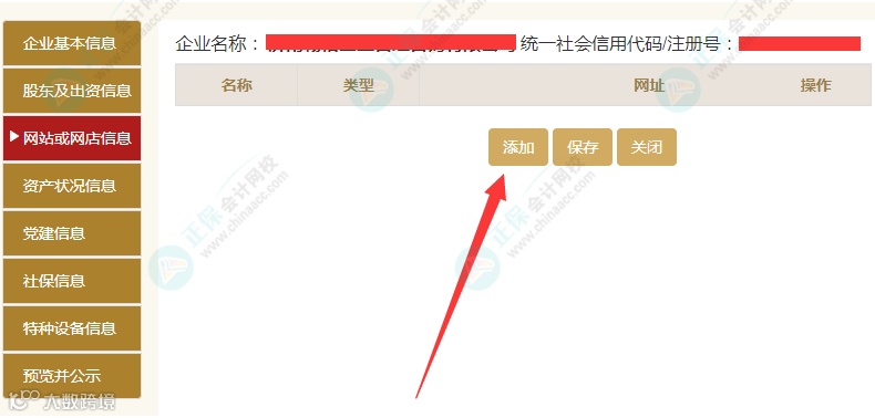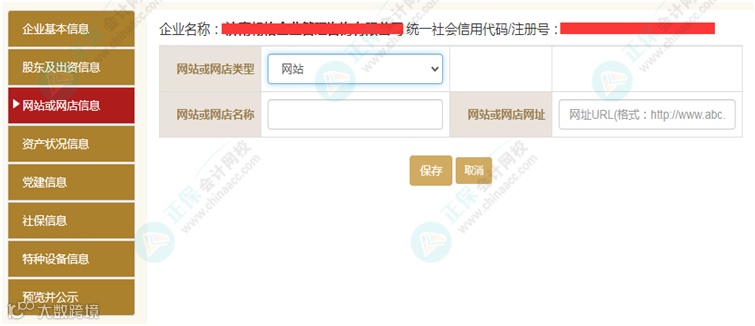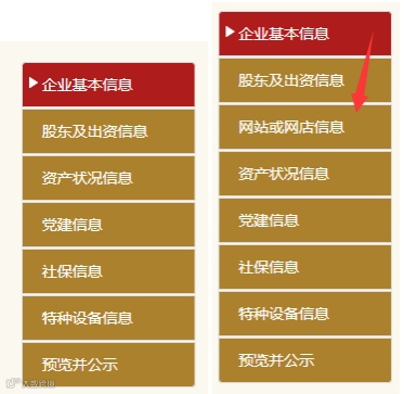 再比如:是否有网站或网店,根据企业情况, 若选“是” ,则出现如下界面。