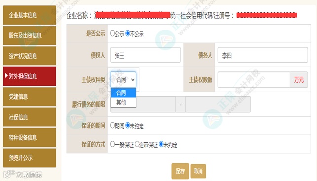 如:是否有对外担保,根据企业情况,若选则的是“是”,将会出现如下界面。