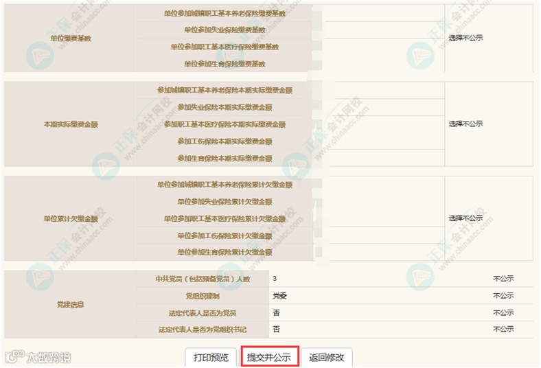 前面信息省略,确认填报信息无误仔细阅读说明内容后,点击“提交并公示”。