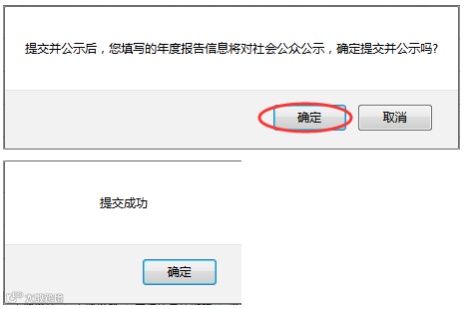 点击“确定”按钮。提交成功后会出现如下提示。
