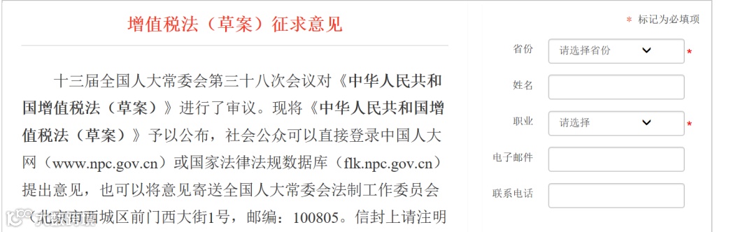 增值税法草案征求意见