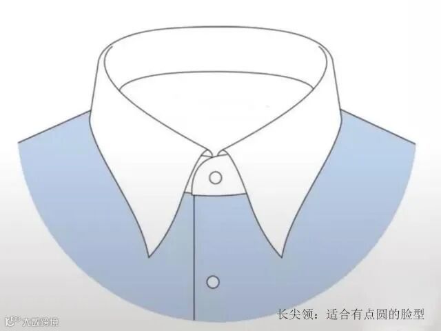 将领尖设计成锐利的尖角形,主要分为两种:长尖角领与短尖角领。两者的区别是长尖角领的衣领更长、更尖锐一些。