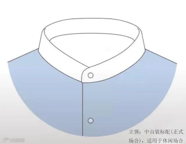 立领是具有中式特色的领型。由唐装演变而来,温文尔雅、无翻领,是中山装的标配。这种领子不系领带,除了搭配中山装的正式场合,搭配其他服装则多用于活泼轻松的休闲场合。