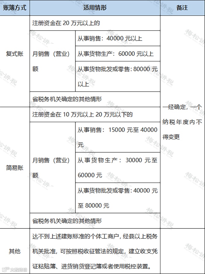 个体户复式账和简易账适用情形