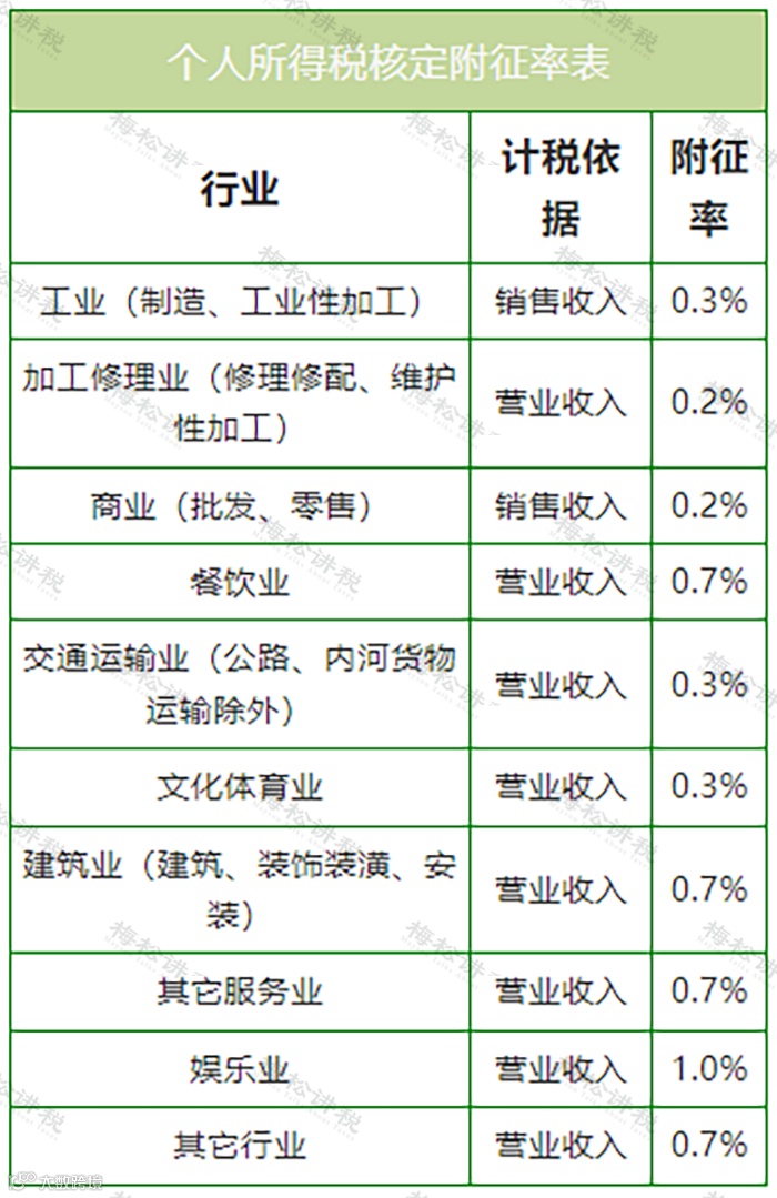 应纳个人所得税额=营业(销售)收入额×附征率