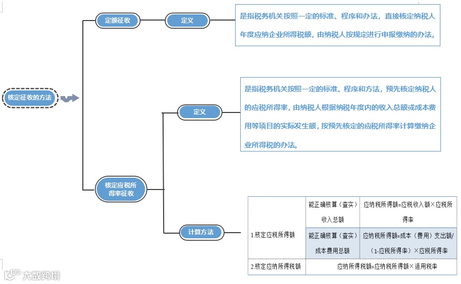 核定征收具体可分为定率(核定应税所得率)和定额(核定应纳税所得额)两种方法。税务机关一般采用下列方法核定征收企业所得税: