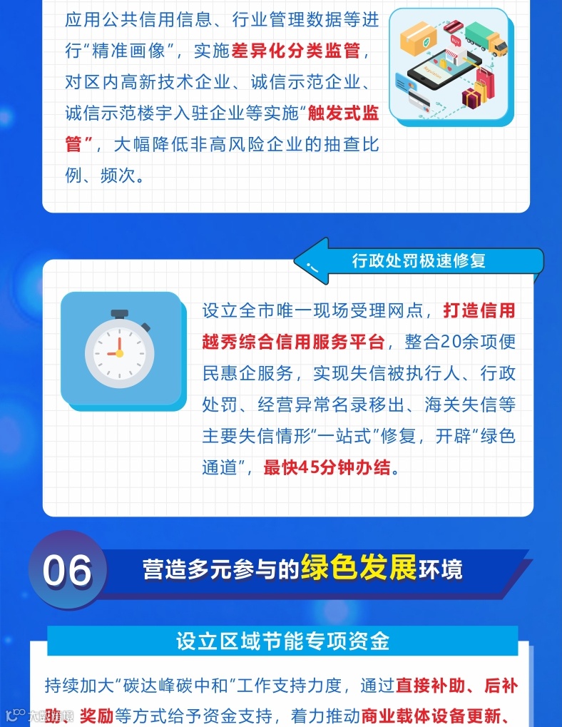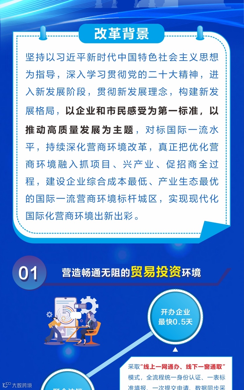 深化营商环境创新试点街区建设,持续推动跨部门数据资源共享,结合区域特色推行政务服务“一窗咨询”“代跑代办”,不断提升服务水平。