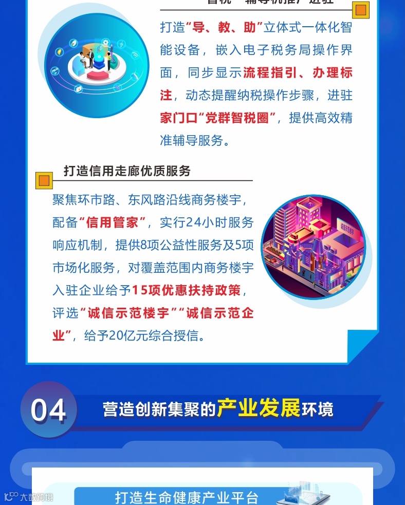 创新打造党群“智税圈”,在各街道党群服务中心建设不少于10个智税服务站点。持续探索“信用+政务服务”,深化“越税信用1+3”纳税信用提升行动计划,将信用分级分类结果嵌入越秀区综合受理系统政策兑现业务,支持以公共信用信息报告作为政务审批辅助审核材料。