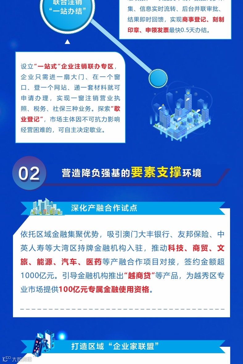 做优“艾小越”“越秀商家”“免证办”“云勘查”“跨域通办”等服务产品,推行企业迁入“一网申请、在线审批”。