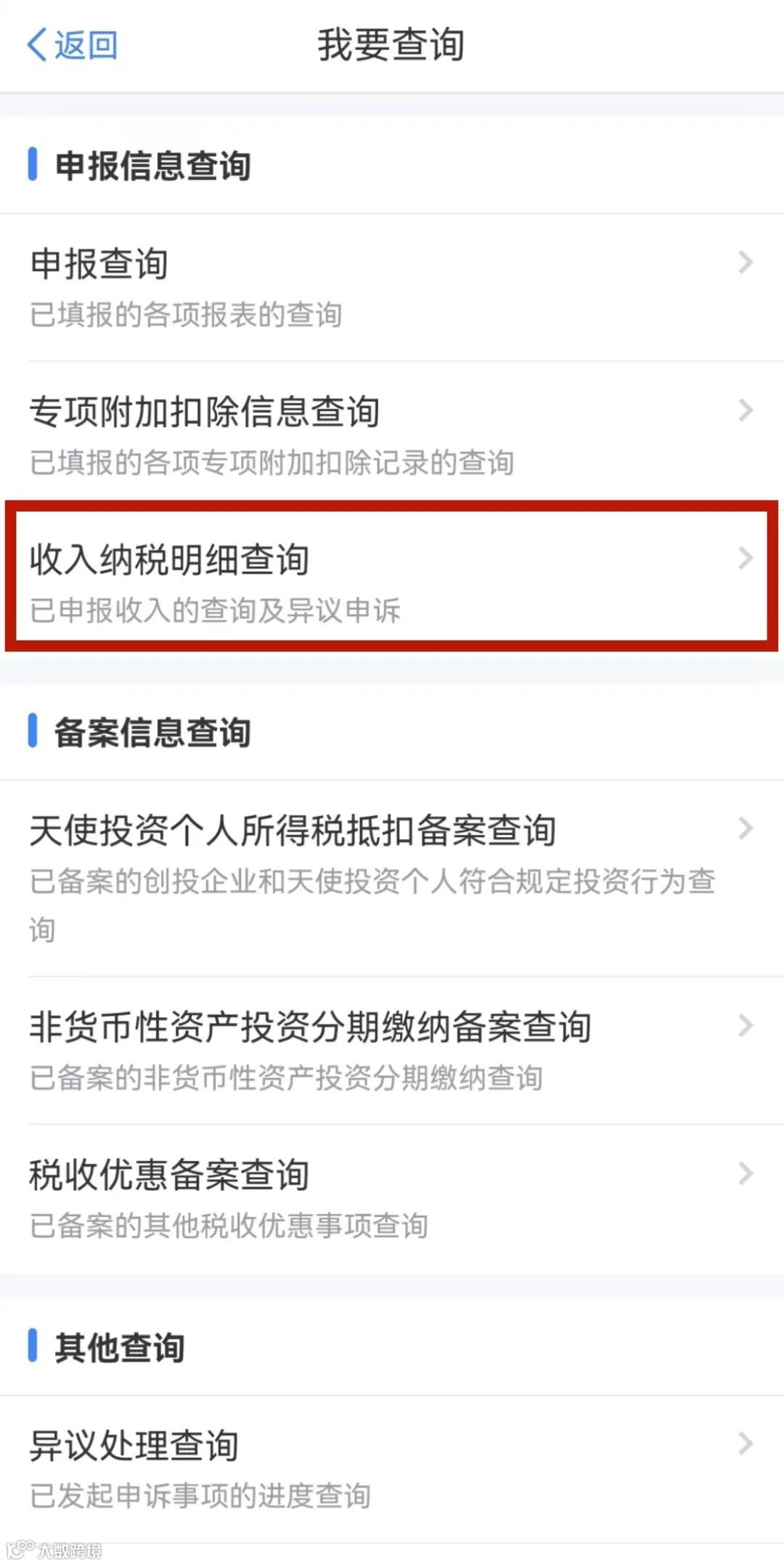2. 按需点击【申报收入查询】或【纳税记录查询】
